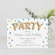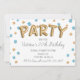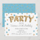 Fonte simples e moderna de balão de festa com folha de ouro e confetes de folha de ouro e azul. Altere a redação para qualquer festa, aniversário, formatura, aposentadoria, chá de noiva, despedida de solteira ou aposentadoria. Isso é folha falsa, não é real.