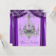 Lustre cinza prateado elegante e candelabro roxo lavanda para ocasião de festa e modelo de convite de evento. Este lindo convite de candelabro roxo lavanda é facilmente personalizado para o seu evento, simplesmente escolhendo o botão "Personalize!" para começar a adicionar os detalhes do seu evento, estilo de fonte, tamanho e cor da fonte e texto. Por favor, note que todos os adesivos, cartões e desenhos de convite que você encontrará no Zazzle são gráficos impressos sem jóias reais, laços, relevos, dourados ou peças ou partes adicionadas.