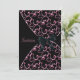 Convite de festa personalizado com redemoinhos cor-de-rosa e sobreposição preta com laço de cetim preto para festa de aniversário ou evento. Este modelo de design funciona bem como convite para festa de aniversário, coquetel, festa de feriado, festa de aposentadoria e qualquer outra ocasião especial. Personalize com sua escolha de estilo de fonte e cor da fonte, e cor do fundo.