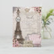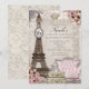 Convites de festa com Torre Eiffel de Paris e Rosas Cor-de-Rosa. Personalize para qualquer evento.