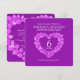 convites de aniversário de casamento de ametista roxa dos 6 anos. Belos efeitos de gemas de ametista roxa em forma de coração em gráficos impressos de convites de aniversário de casamento. Personalize com os detalhes da sua festa de aniversário de casamento dos 6 anos. O aniversário dos 6 anos é associado à ametista e o coração simboliza o amor. Gráficos e design por Sarah Trett para www.mylittleeden.com