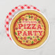 Convite de festa pizza para todos é um convite redondo e plano cheio de pizza com muitos ingredientes. Este convite de pizza divertido é perfeito para aniversários ou apenas um encontro simples. Você pode personalizar todo o texto no verso, que é colocado sobre um prato de papel com garfo e faca em uma toalha de mesa xadrez vermelha.