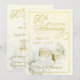 Convites de celebração de bodas de ouro elegantes -- Rosas de casamento e taças de champanhe românticas em marfim com letras em ouro. Personalize os nomes, datas e detalhes para essa ocasião especial e honrosa. Selos e cartões de agradecimento correspondentes disponíveis na galeria.