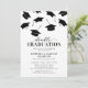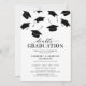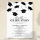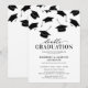 Convites minimalistas de festa de formatura para 2 pessoas com bonés pretos caindo e um modelo de texto moderno que é fácil de personalizar.