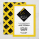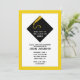 Convites criativos de festa de formatura amarelo, preto e dourado com a característica touca de graduação preta e dourada.