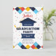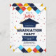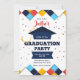 Um convite de formatura feliz e brilhante com fronteiras geométricas um boné de formatura e um confete colorido. (FP). <br/>() O cartão é fácil de personalizar com seu texto, fonte, cor da fonte e escolha de seis tipos de papel.<br/>() Não exatamente o que você está procurando? Todos os nossos produtos podem ser personalizados para atender às suas necessidades sem custos adicionais.<br/>() Basta entrar em contato conosco em askpixieprints@aol.com.<br/>() Coordenar os produtos disponíveis: