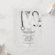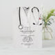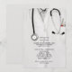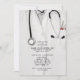 Convites criativos de festa de formatura de medicina com jaleco, estetoscópio e faca suíça engraçada. Edite o texto para criar um convite de festa de doutor único ou anúncio de formatura de medicina.