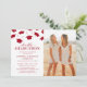 Celebre o marco da formatura com nossos convites de festa de formatura conjunta exclusivos! Personalize-os ao seu gosto com nosso modelo de texto moderno. Com uma vívida cena de boinas de formatura vermelhas descendo e uma foto dos formandos, esses convites certamente agradarão. Não apenas anuncie, cative!