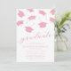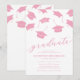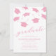 Convites de festa de formatura minimalistas com bonés de formatura rosa caindo e um modelo de texto moderno que é fácil de personalizar.