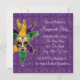 Convites de festa de máscaras elegantes e clássicos nas cores verde, roxo e dourado. O belo convite de festa de máscaras com máscara de Mardi Gras nas cores roxo, verde e dourado é perfeito para uma festa de máscaras de sweet sixteen, festa de máscaras de Quinceanera, festa de máscaras de Terça-Feira Gorda, festa de máscaras de Mardi Gras, convites de festa de Carnaval, convite de baile de máscaras, e qualquer outra festa de máscaras e é facilmente personalizado para a sua festa ou evento, bastando escolher o botão "Personalize!" para começar a adicionar os detalhes do seu evento, estilo de letra, tamanho e cor da fonte e texto. Por favor, observe que todos os cartões e convites que você encontrará no Zazzle são gráficos impressos sem joias, laços, relevos, rebaixos ou peças ou partes