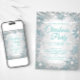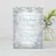 Convites elegantes de festa de Natal com flocos de neve prateados e azuis esverdeados com belos flocos de neve azuis esverdeados e joias prateadas em um fundo de brilho azul esverdeado e luzes de cordão. Este convite de festa de Natal com floco de neve azul é facilmente personalizado para a sua festa ou evento, bastando adicionar os seus detalhes. Este convite de festa de Natal com floco de neve azul esverdeado é facilmente personalizado para uma festa de Natal.