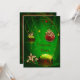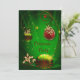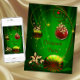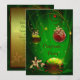 Convites de festa de Natal com bolas e azevinho vermelhos e dourados para troca de presentes do elefante branco.