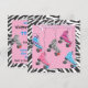 Convites de festa de patinação no rolo super legais com diferentes padrões de patins pendurados em um fundo rosa e zebra. Ótimo para aniversários, adolescentes e festas de despedida de solteira. Ilustração desenhada à mão por McBooboo. Por favor, entre em contato comigo para qualquer dúvida ou alteração.