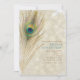 Convites de festa glamorosos com penas de pavão exótico dourado. Personalize para qualquer evento.