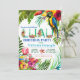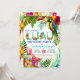 Convites de luau com belo papagaio tropical aquarela e flamingos em um fundo colorido de flores e folhas tropicais. Este convite de festa de aniversário tropical luau é facilmente personalizado para o seu evento, basta adicionar seus detalhes. Você também pode alterar a cor do fundo na frente deste lindo convite de luau aquarela.