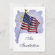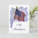 Grave vintage de uma bandeira dos EUA em vermelho, branco e azul retrô, hasteada orgulhosamente em um mastro com uma águia americana no topo e uma corda com uma borla.