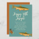 Convites de festa de aniversário para homem adulto para um pescador. Design de truta manchada e isca de pesca com mosca em papel azul-acinzentado com texto branco-esbranquiçado. Personalize facilmente com o nome dele, em letra cursiva negrito, no topo. Todas as informações da festa são adicionadas em forma de parágrafo. Escolha opções de impressão e/ou download. O verso é de cor laranja enferrujado sólido.
