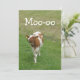 Convites de festas de vaca com vacas em uma terra verde de grama com texto "Moo-oo" e "Par-tyyy!" Altere para o seu próprio texto se quiser! Totalmente personalizável! Adicione Mais Texto e Imagens se desejar!
