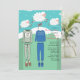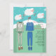 Um convite bonito para a festa de aniversário de pijama de uma menina com pijama e ovelhas a saltar.