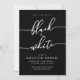 Convites de festas adultos, negros e brancos. Convites de festas modernos e na moda apresentam texto de script fluindo. Este é um convite excelente para festas de solteira, festas de cocktail, festas de adultos e muito mais! Outros materiais de festa e decorações estão disponíveis em Metro-Event.com e em Metro-Events no Zazzle.