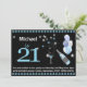 Convites de festas aniversário de 21 anos - Balões e Frasco de Champanhe - Azul e Preto