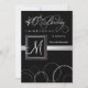 Contemporâneo 40º convites para comemoração da Festa de aniversário de adultos — Preto com roteiro de prata e monograma. Personalize o nome, a data e os detalhes para criar seus próprios convites personalizados exclusivos para esta ocasião especial e honrada. Esse design popular e mais vendido está disponível em outras cores, tamanhos e estilos. Por favor, sinta-se à vontade para me contactar para personalizações específicas. Trabalho de arte e design © Teri Francis. Correspondência de correio e cartões de agradecimento disponíveis mediante solicitação.