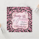 Belo faux sequin aniversário de 40 anos Convites de festas com fontes rosa brilhando personalizadas que dizem "quarenta e fabuloso" com cocktail de sequin prateado em um fundo de sequin de zebra rosada e brilhante. Informações da festa lá atrás. Não sequências reais, isso é uma ilustração.