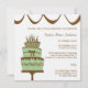 Estes convites de bolo bonitos são excelente de Festas de aniversário, doces dezesseis convites e convites para chás de panela, e apresentam um bolo em camadas bonitinho em verde e marrom com velas no topo. Pronto para personalizar.