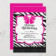Comece a festa de aniversário da sua pequena diva diretamente com o nosso convite de aniversário de diva bonito bonito com um fundo de impressão zebra, um ponteiro preto-e-branco com um quadro preto-e-rosa com um arco de bolinhas cor-de-rosa. Nossas meninas convidadas diva com certeza põem um sorriso no seu rosto divas. Bonito para uma festa de aniversario de meninas. Visite o nosso compro para ver outros convites de aniversário da na moda da princesa moderna e fazer a correspondência entre notas de agradecimento, autocolantes e carimbos de correio. © designs Blackleaf