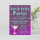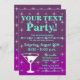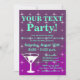 Convites de festas cintilantes com coquetel de vidro | Convites personalizados para convidados. Texto de anúncio personalizável e cor de fundo. Design de coquetel com faíscas brilhantes. Legal aniversário de casamento, aniversário, festa de coquetel, solteira etc. As cores turquesa e púrpura podem ser personalizadas.