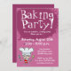 convites de festas| Convites personalizados. Texto do anúncio personalizável e cor do plano de fundo. Divirta-se! Um pequeno desenho de chef com chapéu, avental, colher e mixer de mão.