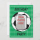 Futebol preto e branco da bola de futebol personalizado com sua fotografia favorita de sua própria estrela de futebol. O excelente personalizou o presente dos convites de festas de aniversários para todo o jogador de futebol, menina do futebol, ou mamã do futebol.