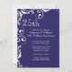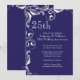 Comece o seu Festa de Aniversário com o nosso convite de festas de aniversário de casamento de 25 com um sotaque vintage branco de espiral floral em um fundo azul. Para um toque especial extra, a parte de trás dos nossos convites coordena-se com a nossa design. Convite perfeito para qualquer aniversário, 30, aniversário de casamento, 40º aniversário, 50º aniversário, 10º aniversário, 5, 60º aniversário ou 75º aniversário.