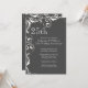 Comece o seu Festa de Aniversário com o nosso convite de festas de aniversário de casamento de 25 com um sotaque vintage de espiral floral branco em uma cinza. Para um toque especial extra, a parte de trás dos nossos convites coordena-se com a nossa design. Convite perfeito para qualquer aniversário, 30, aniversário de casamento, 40º aniversário, 50º aniversário, 10º aniversário, 5, 60º aniversário ou 75º aniversário.