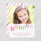 Um aniversário de criança moderno com tipografia colorida de salto e idade e fotografia personalizadas. Clique no botão editar para personalizar este design.