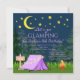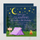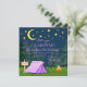 Convites de festas de aniversários com uma tenda roxa giro em um fundo de floresta noturna. Essas meninas bonitas acampar convites de festas de aniversários são facilmente personalizadas para seu evento simplesmente adicionando seus detalhes no estilo de fonte e na redação de sua escolha.
