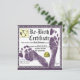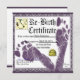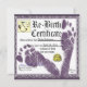 Design de aniversário engraçado e criativo sobre a colina, com uma certidão de renascimento engraçada na frente e detalhes da sua festa no verso.