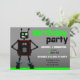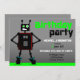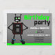 Convites de festas de aniversários personalizados com um robô confiante design de silhueta parcial e com cinza preto, branco e verde. Convite para excelente para bebês, crianças e aniversários de rapazes.