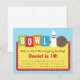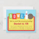 Um convite de aniversário colorido e do divertimento da boliche para os miúdos mais velhos e os adolescentes que preferem um jogo da boliche do divertimento com seus amigos! O convite é arranjado olhar como um sinal da boliche com os alfabetos que compo a BACIA em cores diferentes. Há igualmente um pino de boliche branco e uma bola cinzenta. Personalize facilmente com detalhes do partido.