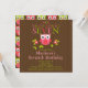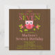 Enfie sua sétima festa de aniversário fora do direito com nossos convites de festas cor-de-rosa & vermelhos adoráveis do aniversário de criança da coruja. Aperfeiçoe o convite para sua 7a celebração da festa de aniversário! Nossos convites da coruja do doce caracterizam uma coruja pequena bonito que senta-se em um ramo de árvore verde da folha com flores e são ajustados em um fundo marrom à moda. Nosso convite da festa de aniversario de meninas da coruja caracteriza um fundo original do teste padrão da coruja. Visite nossa loja para o obrigado de harmonização você cartões de nota, etiquetas do aniversário, obrigado etiquetas e selos postais. © pequeno Tatti