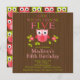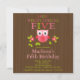 Enfie sua quinta festa de aniversário fora do direito com nossos convites de festas cor-de-rosa & vermelhos adoráveis do aniversário de criança da coruja. Aperfeiçoe o convite para sua 5a celebração da festa de aniversário! Nossos convites da coruja do doce caracterizam uma coruja pequena bonito que senta-se em um ramo de árvore verde da folha com flores e são ajustados em um fundo marrom à moda. Nosso convite da festa de aniversario de meninas da coruja caracteriza um fundo original do teste padrão da coruja. Visite nossa loja para o obrigado de harmonização você cartões de nota, etiquetas do aniversário, obrigado etiquetas e selos postais. © pequeno Tatti