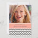 Convites de festas de aniversários da foto feita sob encomenda os 16os no rosa alaranjado do pêssego elegante e moderno, no divertimento do cinza de carvão vegetal e do branco e em ziguezagues ocasionais da viga listram o teste padrão. Adicione seus nome, foto, e detalhes do partido para um convite de aniversário original e do na moda 16o.