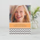 Convites de festas de aniversários da foto feita sob encomenda os 16os na laranja elegante e moderna da tangerina, no divertimento do cinza de carvão vegetal e do branco e em ziguezagues ocasionais da viga listram o teste padrão. Adicione seus nome, foto, e detalhes do partido para um convite de aniversário original e do na moda 16o.