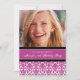 Convites de festas de aniversários da foto feita sob encomenda 20os no rosa fúcsia brilhante elegante, cor damasco floral clássica preto e branco. Adicione seus nome, foto, e detalhes do partido para um convite de aniversário original e do na moda 20o.