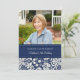 Convites de festas de aniversários da foto feita sob encomenda 75th em azuis marinhos escuros elegantes, em creme e no teste padrão floral clássico branco do vintage do damasco. Adicione seus nome, foto, e detalhes do partido para um convite de aniversário original e à moda.