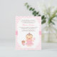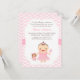 A bailarina pequena está girando um! Twirl, pule e deslize para comemorar seu primeiro aniversário convidando os convidados com este convite de aniversário temático da bailarina bonito e doce. Vem com uma menina pequena bonito da criança vestida em um vestido cor-de-rosa do tutu com muitos folhos e arco de harmonização. Está aferrando-se a um urso de ursinho pequeno no equipamento de harmonização e em um brinquedo do chocalho por outro lado. Teste padrão de ziguezague cor-de-rosa e branco da viga para o fundo. Personalize facilmente com detalhes do partido.