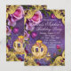 Convites de festas de aniversários da princesa do conto de fadas com rosas bonito rosa sobre um fundo roxo brilhante com uma bela princesa real treinadora. Você pode personalizar facilmente este belo convite de aniversário de princesa rosa e roxo para o seu evento simplesmente adicionando seus detalhes no estilo de fonte e na cor, e o texto de sua escolha. Esta é uma design impressa sem joias reais, fitas, brilho, etc.