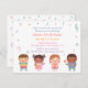Um convite para crianças bonitas se juntarem para tocar vários instrumentos musicais de brinquedos! Os instrumentos musicais incluem tamborina, trompete e chocalho! Perfeito para aquela divertida música temida celebração da festa de aniversário! Este convite colorido transmite uma sensação de diversão e é perfeito para garotos e meninas de aniversário! Personalize facilmente com os detalhes do seu partido. A página inversa é um padrão feito com notas musicais e símbolos (como clefs, afies, apartamentos) e estrelas.