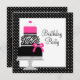 Bonito bolo de zebra rosa-quente com arco de diamante cor-de-rosa qualquer convite de aniversário. Este convite de aniversário rosa-quente é facilmente personalizado para a sua parte ou evento adicionando os detalhes do evento, estilo da fonte, tamanho e cor da fonte e texto. Por favor, note - todos os topos do bolo, adesivos, cartões e designs de convite que você encontrará no Zazzle são gráficos impressos sem joias, arcos, levantados, gravados ou adicionados de peças ou peças.