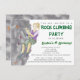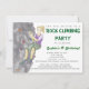 Convite de aniversário de escalada de rocha com muro de rocha e alpinista escolhe o seu próprio fundo e cor de texto. Você pode personalizar facilmente qualquer convite de aniversário de escalada numérica desta criança para seu evento simplesmente adicionando seus detalhes no estilo de fonte de sua escolha.